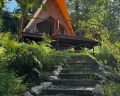 Хорошие чистые домики есть баня чан ресторан. атмосфера огонь. Глэмпинг находится в лесу рядом протекает горная речка кругом поют птички есть барбекю и мангальная зона