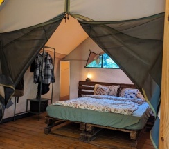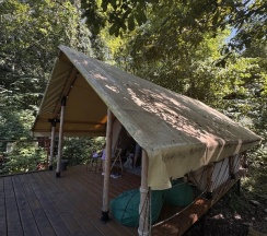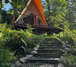 Глэмпинг Древо - уникальная возможность пожить в лесу с эстетикой и в комфорте. Сердце места – 300летний тополь. Под этим исполином можно послушать аудио-медитацию, подумать о своём, энергетика зашкаливает. Мы уже дважды останавливались в тент-хаусе Сафари с шикарной террасой. На ней можно провести хоть весь день под шелест тополей, а можно пойти купаться в великолепной Шахе. Птицы поют, шаккалы воют, цапли прилетают, речка шумит – все это меняют состояние, перезагружает. Это чайный регион, в окрестностях самые живописные чайные плантации в Сочи. Благодарны за великолепный отдых.