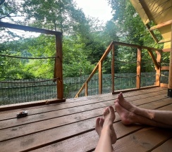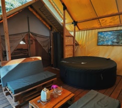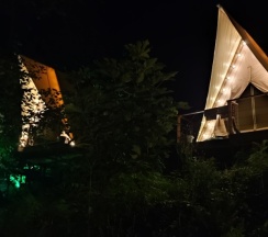 Отличный выбор для отдыха от города! Нам очень понравилось! Днем на речке в жару просто кайф! А вечером на бассейне еще круче! Ночью спишь как в палатке в лесу! А подсветка вечерняя это просто не передать Как атмосферно!😍 Обязательно вернемся еще! Спасибо! 10 звезд!!!