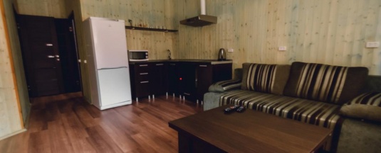 Апартаменты с отдельным входом, общий проход только с проживающими в бунгало. Апартаменты включают в себя: гостиную (диван раскладной, стол, стулья, ЖК телевизор) с кухней (холодильник, СВЧ печь, чайник, плита, набор посуды). Санузел (душевая кабина, унитаз, раковина, биде). Есть номера, где отсутствует окно в спальне!