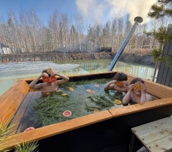 Недавно мы провели чудесные выходные в арендуемом домике с чаном и баней, и это было просто незабываемо! С самого начала нас встретила уютная атмосфера и красивый пейзаж вокруг. Домик был очень комфортабельным, с продуманным интерьером и всем необходимым для отдыха. Мы сразу же почувствовали себя как дома. Пар с ароматом трав и возможность расслабиться после насыщенного дня на свежем воздухе сделали наш отдых поистине волшебным. А чан на улице — это отдельная история! Ночью, под звездами, мы наслаждались горячей водой и общением, забыв обо всех заботах. Хозяева домика были очень дружелюбными и внимательными, всегда готовы помочь и подсказать лучшие места для прогулок и развлечений. В общем, если вы ищете место для отдыха с друзьями или семьей, где можно насладиться природой, расслабиться в бане и провести время в чанe — это идеальный вариант! Мы уже планируем вернуться сюда снова!