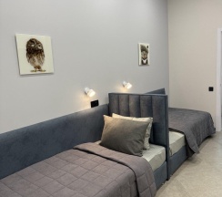 Просторный номер с отдельной кроватью для каждого гостя, ортопедическими матрасами и удобной мебелью, создающими атмосферу домашнего тепла и комфорта. Для дополнительного удобства предусмотрен диван-кровать. К услугам отдельная оборудованная мини-кухня с необходимыми приборами и посудой, позволяющая наслаждаться домашней едой в любое удобное время. Здесь же имеется вся необходимая бытовая техника, включая холодильник, чайник и микроволновую печь. Для максимального удобства - полотенца, мягкие халаты и набор предметов первой необходимости. Бесплатный Wi-fi позволит всегда оставаться на связи, современный телевизор со встроенным Smart-TV позволят наслаждаться любимыми фильмами и сериалами. Кондиционер обеспечит комфортные климатические условия независимо от сезона.