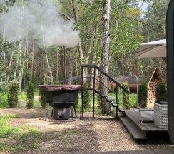 Мангальная зона отдельно,что тоже очень удобно!Свежий воздух и потрясающая природа!