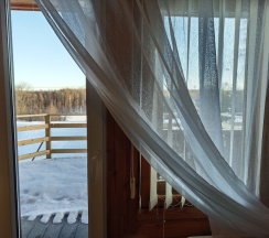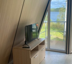 Номер на втором этаже, с выходом на балкон. Вид на лес и озеро, состоит из двух комнат и кухни- студии.