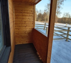 Из Домика Вы сможете выйти на собственную террасу с потрясающим видом на озеро. Это идеальное место для утреннего кофе или вечерних посиделок на свежем воздухе, где Вы сможете насладиться природой и красотой окружающего пейзажа.