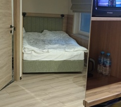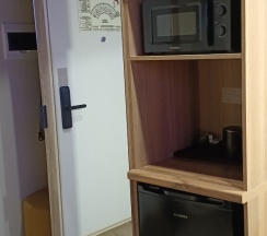 Чисто, современно, метро в шаговой доступности. Рядом есть заведения где можно покушать. Номер брали на двоих, приблизительно цена за номер 7 000 руб. В номере есть ванные принадлежности, фен, тапочки одноразовые, два халата, полотенца, сейф, холодильник, столовые приборы, микроволновка, стаканы и кружки, телевизор.
