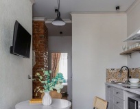 Понравились апартаменты. Чисто, комфортно, в номере есть все для жизни (стиральная машина, плита, микроволновка, посуда). Лаконичный интерьер в пастельных, природных тонах и как приятно что не бежевый..))