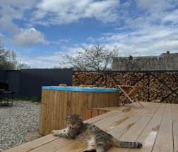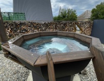 Отличное шале с джакузи, тапочками, халатами и красивой посудой. Классный мангал и костровище. Есть где погулять. Красивый лес и река.