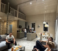 Классный, уютный, комфортный дом! Отдыхали с друзьями с 31.01-2.02.2025. Очень понравилось! Дом новый, чистый, пахнет деревом. В доме есть все необходимое для комфортного отдыха 👍 +баня, муз колонка, настолки. Удобное расположение, тихое место, в 5 минутах ГЛК. Хозяйка Анна очень приятная, всегда на связи, сразу отвечает на все вопросы. Спасибо за незабываемый отдых, приедем снова! Рекомендую всем!