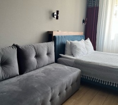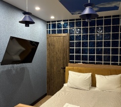В номере было все необходимое, классное решение сделать тканевые стены , нигде такого не видела , прикольно )и свежий ремонт , как будто только -только построились, всем очень понравилось и остались лучшего впечатления о городе