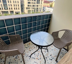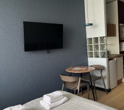 Я очень довольна! Апартаменты новые, ремонт хороший, всё необходимое есть. Даже отпариватель в номере есть. Чистота идеальная. Бесконтактное заселение мне особенно понравилось. Ячейки для хранения багажа. В общем всё на достойном уровне.