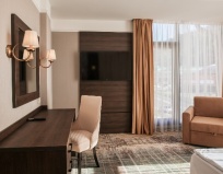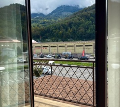 Номера просторные, убирают каждый день. С номера открывается вид на горы. Единственное, не хватило больше крючков, мест куда можно повесить горнолыжные костюмы или кинуть шлема.