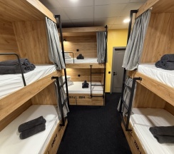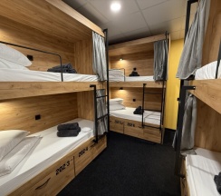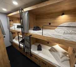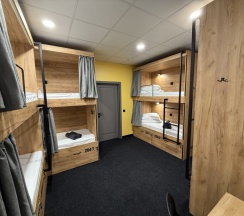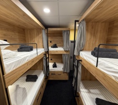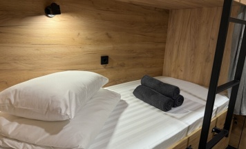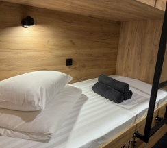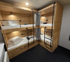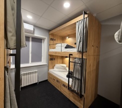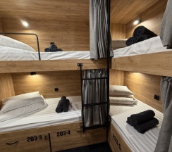 Комфортный номер с 3-мя двухъярусными кроватями. Каждая кровать с индивидуальной розеткой и освещением. закрывающаяся шторка позволяет создать уединенное пространство.