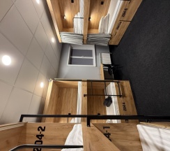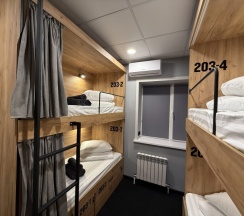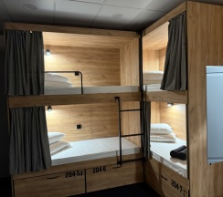 Комфортный номер с 2-мя двухъярусными кроватями. Каждая кровать с индивидуальной розеткой и освещением. закрывающаяся шторка позволяет создать уединенное пространство.