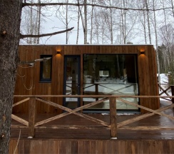 Хорошая локация, снимали два домика, отдыхали двумя компаниями. Всем всё понравилось, домики оснащены умным домом с Алисой. В домиках всё свежее, не обшарпанное в плане ремонта. Панорамное окно в видом на лес.