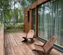 Приехали в это прекрасное место с женой. Встретили , разместили, все рассказали, объяснили. Сервис - прекрасный. В домике есть все необходимое для проживания. В стоимость входит вкусный завтрак, на выбор. Терраса чистая, есть по паре качающихся стульев. Все необходимое для розжига углей. Воздух чистый, в домике вентилируемый воздух, система умный дом с Алисой.