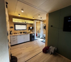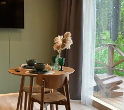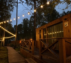 Прекраснейший отель🤩 наслаждение от природы т. к отель расположен в лесном массиве, но при этом почти нет насекомых которые докучают, только птички и маленькие зверьки. Домик с системой умный дом, очень удобно. Разноуровневые сценарии подсветки для разного настроения. Приятный дизайн. Одно удовольствие было проживать в нём. Персонал все такие лапочки🥰 всегда помогут, подскажут, в кротчайшие сроки устранять какие либо проблемы, на связи круглосуточно.