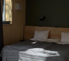 Просто шикарное место😍 влюбилась с первого взгляда в то, как оформлены домики. А ещё там очень уютно и комфортно, вкусный завтрак и доброжелательный персонал. В домиках есть все необходимое, по необходимости принесут плитку если хотите сами готовить, вода питьевая бутылированя в достатке, также по необходимости приносят ещё.