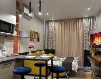 Классные аппартаменты - чисто, стильный ремонт, хорошие спальные места, есть посуда. Рядом море, на первом этаже - магазины, кафе.