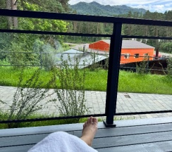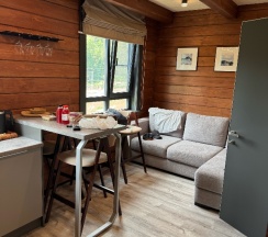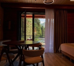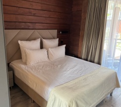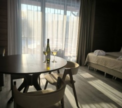 Здравствуйте! Отдыхали с 13 по 16 сентября в апартаментах. Приезжали семьёй из 6 человек: бабушка, дедушка, мама, папа, дети 6лет и 1 год. Места достаточно. Хотя нас вроде много и вещей куча🤪. Пересмотрела кучу вариантов - или мало места, или для 6 человек за бОльшую сумму. В отеле "Лес" Комфортная цена на 6 чел, при этом ооочень всё красиво, достойно, чисто и, что важно для нас, нет ничего, что мог бы разбить или испортить активный годовасик😅. На счёт этого прям проблема везде. Если красиво, то обязательно куча всего, что-либо будет сломано ребёнком, либо мы весь отдых будем караулить сохранность имущества 😅.