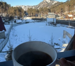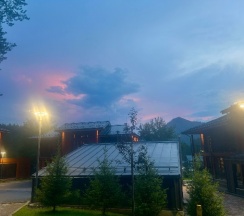 Есть бесплатный трансфер до ГЛК Манжерок, но мы на своём трансфере катались.