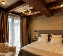Великолепный отель, отличное расположение, все достаточно близко (кафе, магазины, достопримечательности),но все таки нужна машина, потому как посмотреть все красоты Алтая просто так не удастся. Номер у нас был чудесный, отдельная комната с двухспальной кроватью, большая кухня-гостиная с удобным диваном для детей, прекрасная уборная и потрясающая лоджия с видом на лес и гору. В номере все продумано до мелочей, ножи, посуда, смесители, кондиционеры, уборка каждый день. Огромное спасибо руководителю и сотрудникам за такую красоту. Мы в полном восторге и от отеля и от Алтая в целом. Это место где глаз радуется всему и хочется вернуться ❤️