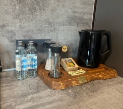 Отзывчивый персонал. Посуда классная, у нас дома этой же марки, было очень приятно. Даже гейзерная кофеварка есть. И комплимент от отеля в виде водички, разного чая, сахара, молотого кофе.