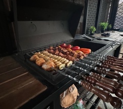 Территория – это отдельный восторг! Ухоженная, зелёная, с потрясающими зонами для отдыха. Понравились беседки – так приятно провести там вечер с чашечкой чая. А мангальная зона – просто мечта! Всё продумано для комфортного отдыха с друзьями или семьёй.... Так же и зона столовой... Как в дорогом кафе, только самообслуживание) микроволновки, посуда, чайники и огромный телевизор!)