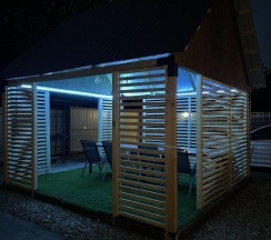 Большой, теплый бассейн, с самой современной системой фильтрации воды; глубина 1,6 метра, размер 3м на 6м; Температура +30-32 градуса (по запросу). Есть просторная и уютная беседка для посиделок на улице. Беседка рассчитана на 15 человек. Мангал, решетки для жарки. Парковка для ваших автомобилей. Парковка во дворе до 4 авто.