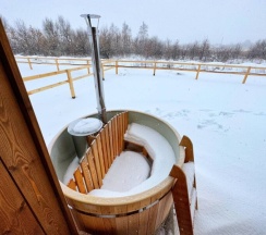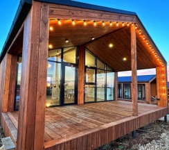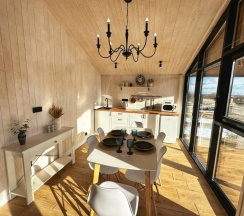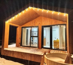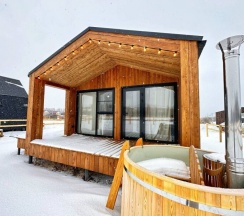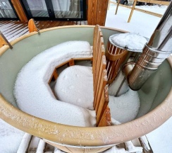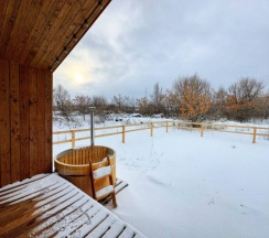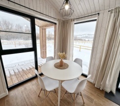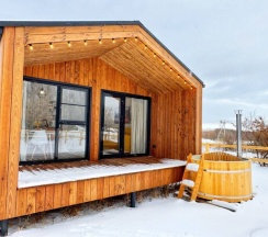 Из панорамных окон вы будете наблюдать невероятные виды на горы, как зимой, так и летом. На улице установлен мангал, где вы сможете приготовить любимые блюда, или заказать уже готовую горячую еду с доставкой у наших партнеров. Японская баня Фурако дополнит ваш отдых и наполнит вас энергией!