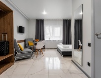 Чистый номер, небольшой-но все необходимое есть, отель со свежим ремонтом недавно открылся - менеджеры отвечают оперативно - нам все понравилось