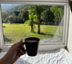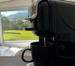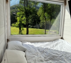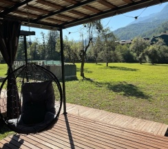 Прекрасный домик с невероятно красивым видом на горы,приятная терраса с качелями,проснувшись смотришь сразу на такую красоту,в домике есть все для приготовления завтрака ,приветливая и отзывчивая хозяйка