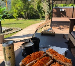 Отдыхали компанией! Все на высшем уровне! Предусмотрели каждую мелочь, в бане есть одноразовые тапочки, полотенца, шампунь, гель для душа, чайник, холодильник очень вкусные травяные чаи заваривать, к чаю мед и сушки ❤️ Нам было все очень понравилось! Всем советуем! Очень приятные и внимательные сотрудники!