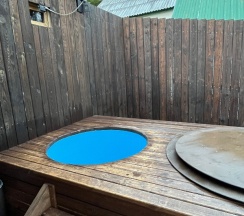 Небольшая уютная хорошая баня. Парная хорошая, внутри есть мини-кухня с холодильником. Отдыхали втроем ( по вместительности до 4-5 человек),стоимость небольшая,не хватает купели, но ее обещали позже установить.