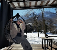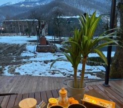 Отличное место , все соответсвует описанию и фото . Очень чисто ,тепло ,вид с террасы на миллион .очень близко канатная дорога , кафе рестораны ,казино . Баня супер! 🍃