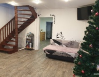 Отдыхали с компанией 8 человек. Очень уютный дом, распложен в тихом месте, рядом шумит речка. Отличная мангальная зона. Сауна свежая, разрешают пользоваться веничком. 👍 Просторная гостевая, большой стол, караоке, есть где потанцевать. Есть все кухонные принадлежности. На втором этаже три спальные комнаты. Идеальная чистота. Хозяева доброжелательные. Впечатление сверх ожидаемого! Отдохнули великолепно! Спасибо! Рекомендую от души!
