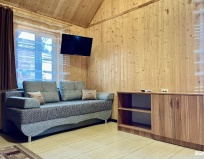 Домики двухкомнатные отличные со всеми удобствами, есть со вторым этажом, вместимостью до 7 человек. У каждого домика мангал, стол и две скамейки под навесом. Большая территория с газонами. Есть детская площадка, две просторных кухни - столовых с холодильниками и со всем необходимым. Народа немного (всего 6 домиков). Рядом пруд с лягушками и утками. Недостаток один: далеко от центра и магазинов с кафе. Зато недорого и тихо. Петух с утра замечательно поет, а вечером - лягушки))) Рекомендую однозначно.