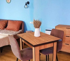 В одной комнате - удобный диван с спальным местом, в другой - двуспальная или две односпальные кровати (на ваш выбор). В номере также есть прихожая и санузел с душевой кабиной.