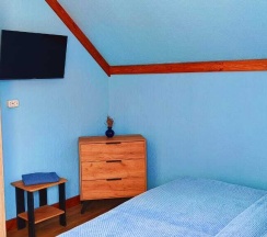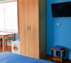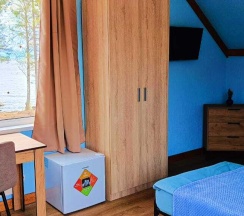 Для вашего удобства в номере имеются две односпальные либо одна двуспальная кровать (по вашему желанию), шкаф для одежды, комод, прикроватные тумбочки, стол, 2 стула, вешалка, чайник, холодильник, вентилятор, отдельный санузел с душевой кабиной и феном. В стоимость проживания уже включены завтраки, обеды и ужины. Для любителей расслабиться на свежем воздухе, мы предлагаем баню, чан, традиционные напитки и блюда на гриле. На территории нашей базы организована охраняемая парковка. Из больших окон номера открываются прекрасные виды на озеро, лес и окрестности, позволяя наслаждаться природой в любое время года.
