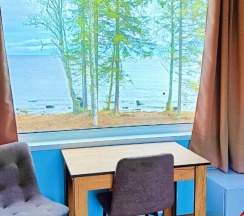 Уютный номер Джуниор сюит - 1 расположен на 1 этаже комфортабельного двухэтажного домика на берегу Онежского озера. Панорамное окно, шикарные виды на озеро и крытая меблированная терраса придают особый шарм и дарят неизгладимые впечатления. Номер идеально подойдёт для комфортного проживания небольшой семьи из 2-х или 3-х человек (при заказе доп. места). Если у вас семья побольше, то почти всегда можно заказать еще один номер на втором этаже.
