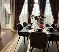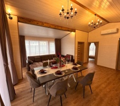 Очень красивый дом, приятно было в нем отдыхать, ухоженная территория, банька на дровах. Для отдыха было все- мангал, шампура, казан. Весь дом укомплектован всем необходимым. Очень жаль, что не знали про него раньше и ездили в различные Афреймы, где не удобное расположение внутри.