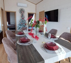 Дом большой и очень уютный. В нем две спальни, которые идеально подходят для семейного отдыха или компании друзей. Просторная гостиная с большим столом позволяет собраться всем вместе и насладиться общими моментами.