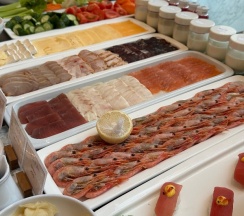 Завтрак шведский, выбор большой, всего попробовать не смог, слишком много видов блюд. Но что успел, всё было вкусно.