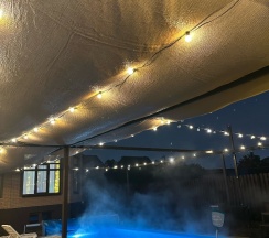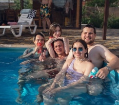 Отмечали день рождения, выдалась прохладная погода, но даже с этим условием бассейн был теплым