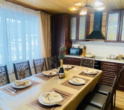 Здравствуйте! День назад приехали с базы, а уже хочется обратно. Решили с друзьями отдохнуть от города, от работы. Выбрали именно этот дом, и не прогадали!Коттедж просторный, светлый и какой-то тёплый, что ли. Тёплый по настроению) На кухне есть все необходимое.А второй этаже просто шикарен,с выходом на балкон.Хозяйка приветливая,вежливая, все показала, объяснила. Классные беседки, рядом мангальная зона, тишина.... Рассказывать о хорошем можно бесконечно. Но главное - я точно знаю, мы ещё вернёмся)) Спасибо!