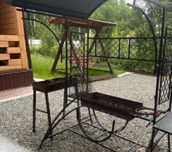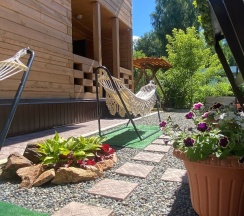 Были на базе "Гостиный двор" возле озера Ая. Очень понравилось. 3 отдельных номера на три семьи. У каждого все удобства и внутри, и снаружи. Две рядом стоящие беседки, мангал, бассейн. У номеров 1-ого этажа большие двух-ярусные кровати, стол. На веранде столик с лавочками и диванчиком. На втором этаже номер побольше, двухкомнатный. Большая гостиная с кухонным гарнитуром, необходимой посудой и даже посудомойкой. Большой стол для всей компании. Диван, если мало места в спальне. В комнате большая кровать и диван. В ванной тоже есть всё: стиральная машина-автомат, зубная паста, шампунь, гель для душа, фен, утюг, гладильная доска и сушилка для белья. На веранде второго этажа большой стол, лавки и диван с красивой подсветкой. Вечером ужинать там одно удовольствие. Рядом с базой есть магазины, кафе, рыночки с сувенирами. Хозяйка - женщина добрая, хорошая, просто замечательная, на все просьбы, вопросы откликается в секунду. Отличное место. Думаю, вернёмся при случае!