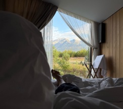 Очень красивое место, вид на горы великолепный, отзывчивый персонал,мебель,постельное белье все новое есть кофемашина,все очень достойно, европейского уровня