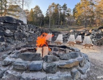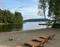 Отель находится в красивом месте прямо на берегу озера ( в 20 минутах от центра Сортавалы). Прекрасно оформленная и ухоженная территория с собственным пляжем, детскими площадками, костровищем и прогулочными дорожками. Домики стильные и уютные , особенно приятно было провести дождливый вечер у дровяного камина! Вид с террасы тоже отличный! Хорошие матрасы и постельное белье - сон был отличный. На территории отеля есть хороший ресторан с видом на озеро, а в ряде домиков - кухня ( в нашем только чайная зона с посудой). Можно забронировать баньку- бочку с прудиком, что мы и сделали- кайф! Можно приготовить шашлыки ( мангал и шампуры предоставляют за отдельную плату). Можно покататься на велосипедах, порыбачить или прокатиться на катере ( все за плату). Это единственный минус- все оплачивается отдельно и не входит в стоимость номера .
