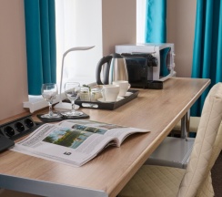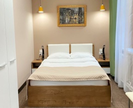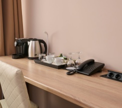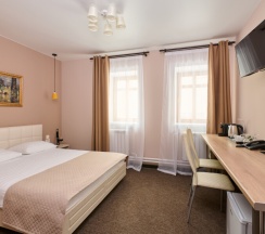 Комфортабельный просторный номер с двуспальной кроватью оснащен всем необходимым для полноценного отдыха и плодотворной работы.