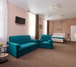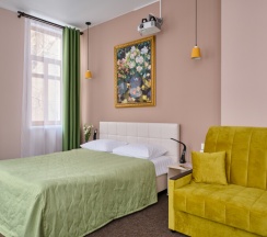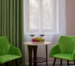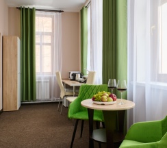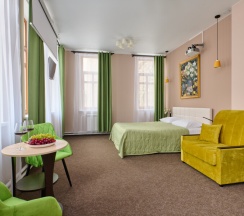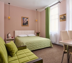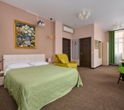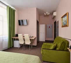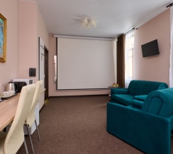 В просторном и светлом номере Люкс возможно размещение до 3 гостей. В номере есть все для комфортного проживания: от микроволновой печи до кинопроектора и журнального столика.